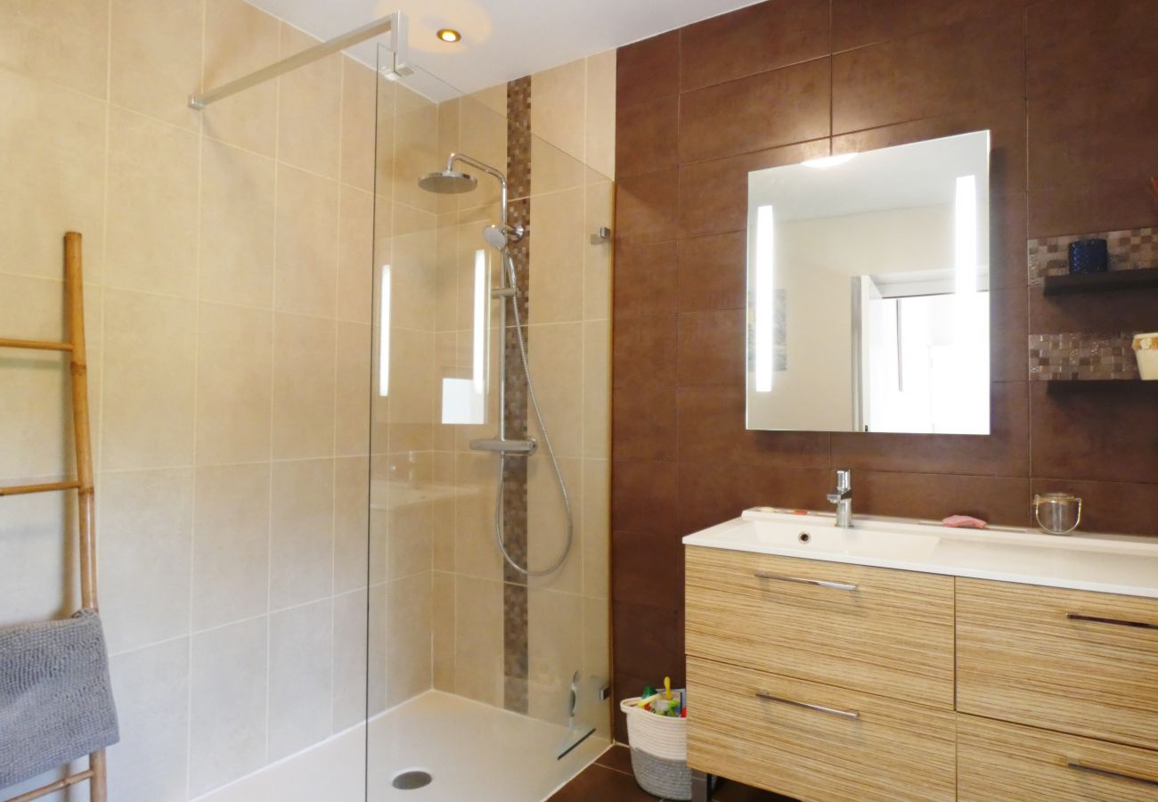 Downstairs, you will find the pool area with sun loungers for relaxation. The pool, secured by an electric roller shutter, measures 11x4.80m with a flat bottom of 1.50m. A pétanque court and a ping-pong table complete the outdoor facilities for moments of entertainment with family or friends.